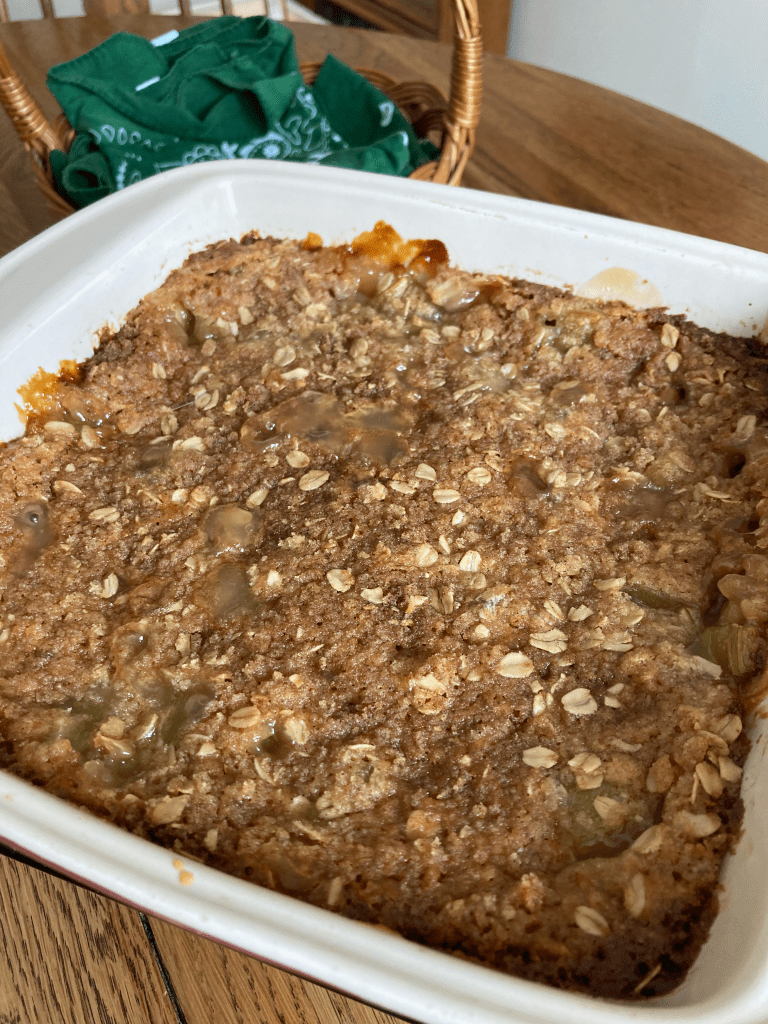 While rhubarb is a vegetable, it is used more like a fruit and can be found mostly in dessert recipes. It is especially delicious when paired with strawberries. My favorite rhubarb recipe is called Rhubarb Crunch. It is easily adapted to be gluten-free, too! I would love to share it with you.